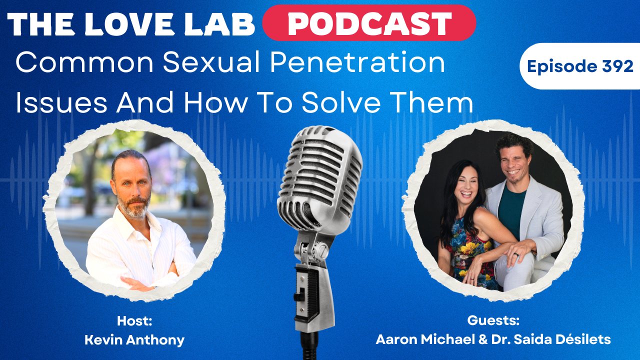All right, welcome back to the Love Lab podcast. This is episode 392, and it is titled, Common Sexual Penetration Issues and How to Solve Them. It was interesting. I have some guests, so if you’re watching this on YouTube, you can see them. They’re patiently waiting for me to get through the intro here. And during that pre-interview call, we were talking about sexual penetration issues, and my guest made it really clear that those weren’t just penis-in-vagina issues. And so I kind of want to state that up front. We’re going to be talking about common sexual penetration issues, and they may revolve around all sorts of different things. Anytime you put something into something else, when it comes to sex, there could potentially be issues.